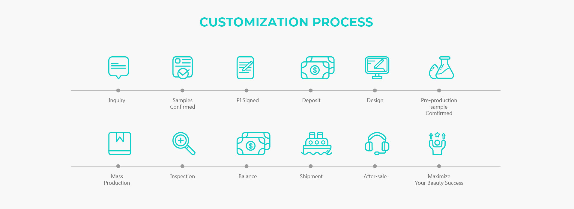 We operate 4 R&D and production bases, 1 marketing & R&D center, covering a total area of over 75,000 square meters. Equipped with 100,000-class GMP standard workshops and 45 advanced production lines, our 950+ professional production team enables efficient mass production. Even for large orders with a minimum of 10,000 pieces, we can ensure delivery within 30-45 days.
